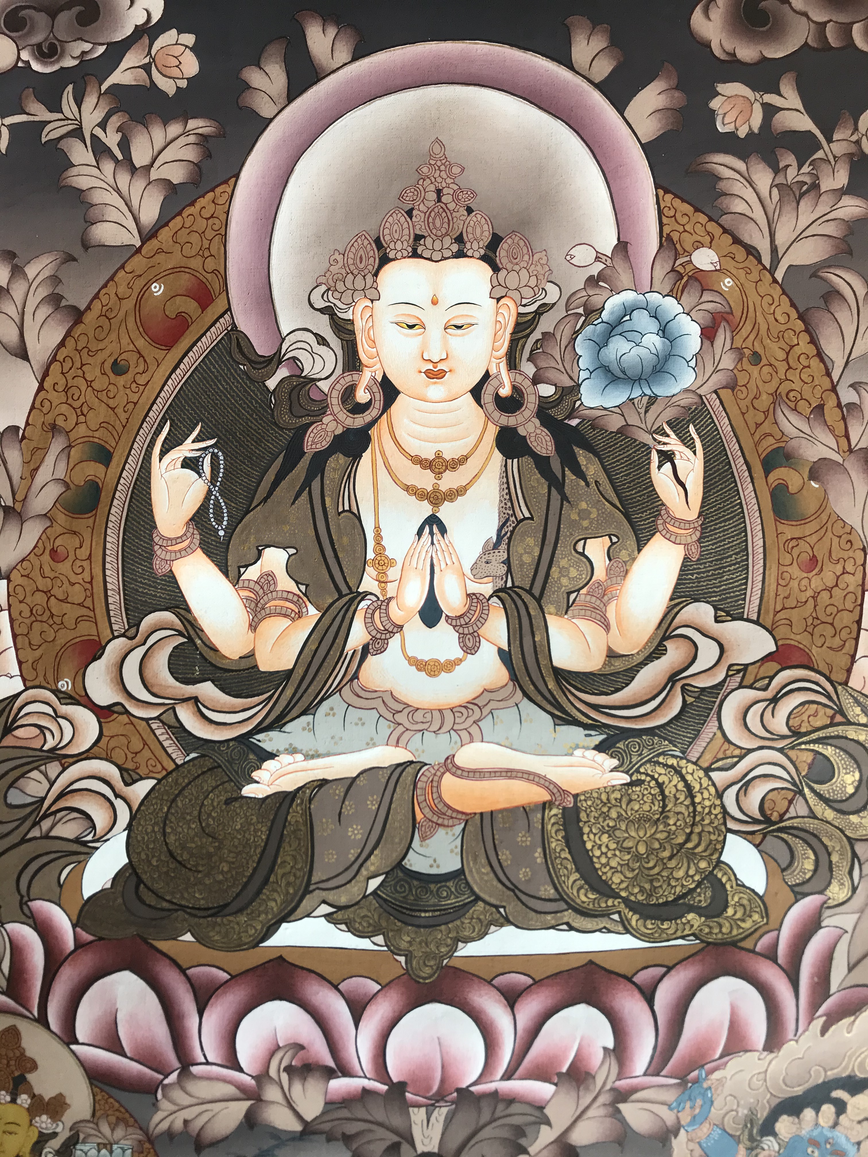 beings. His four arms and hands signify the four immeasurables: immeasurable