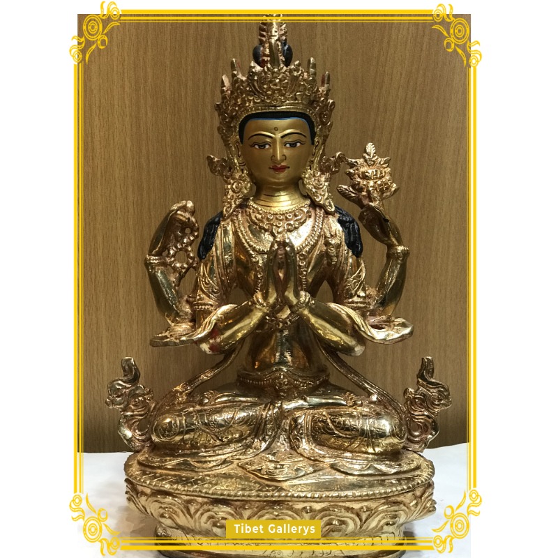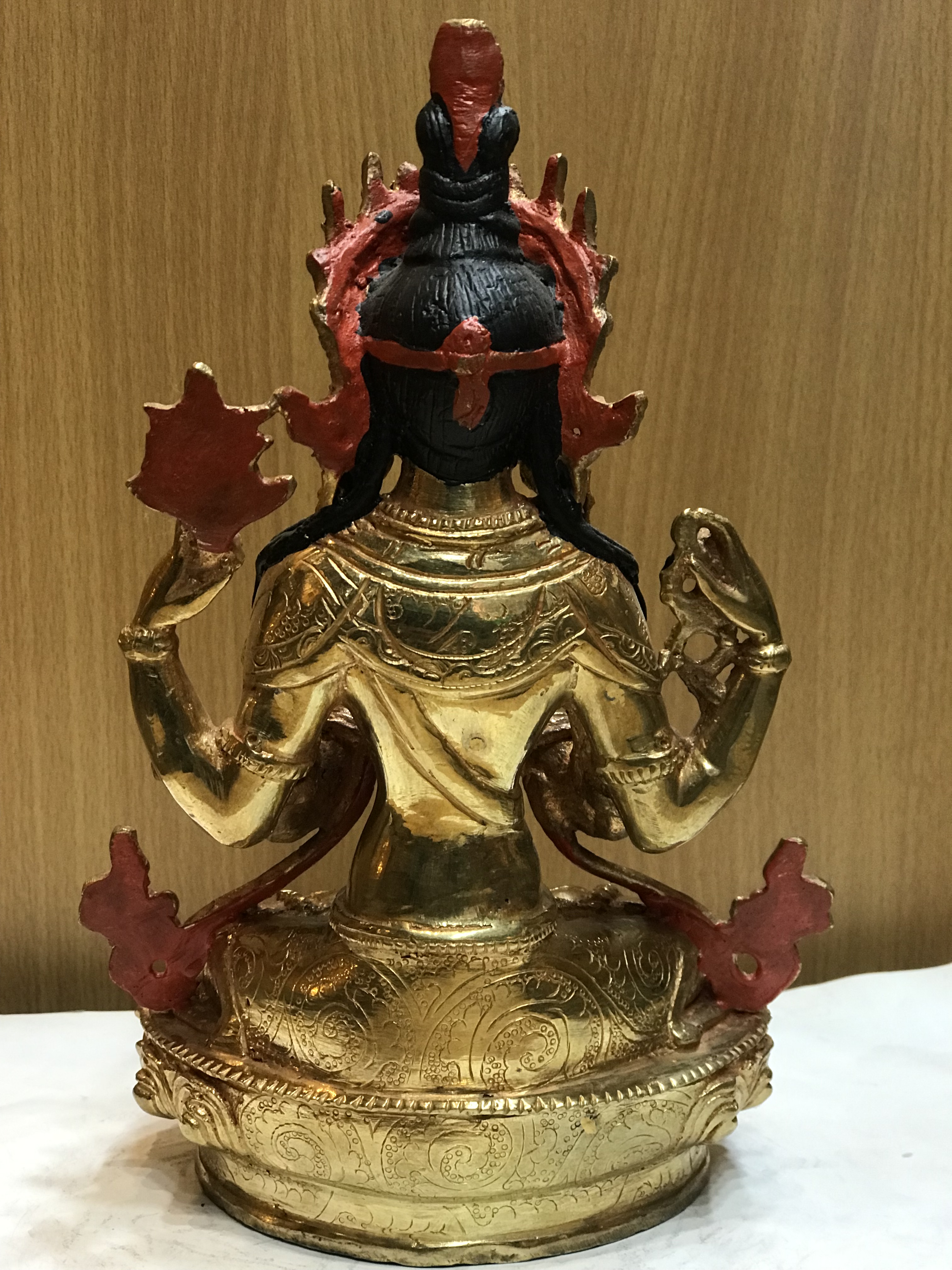 The Avalokiteshvara statues that our Nepali artisans make for the Tibetan monasteries commonly have four arms and single head. As an embodiment of the Bodhisattva of Compassion, Avalokiteshvara is able to hear and see the cries and suffering of all sentient life. Additionally, his four arms will greatly speed up progress and end the cycle of samsara for suffering beings.