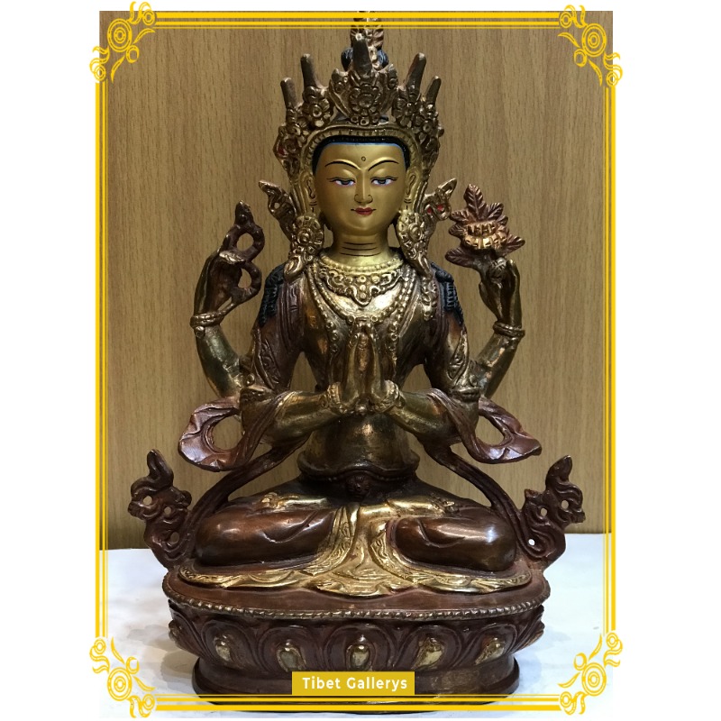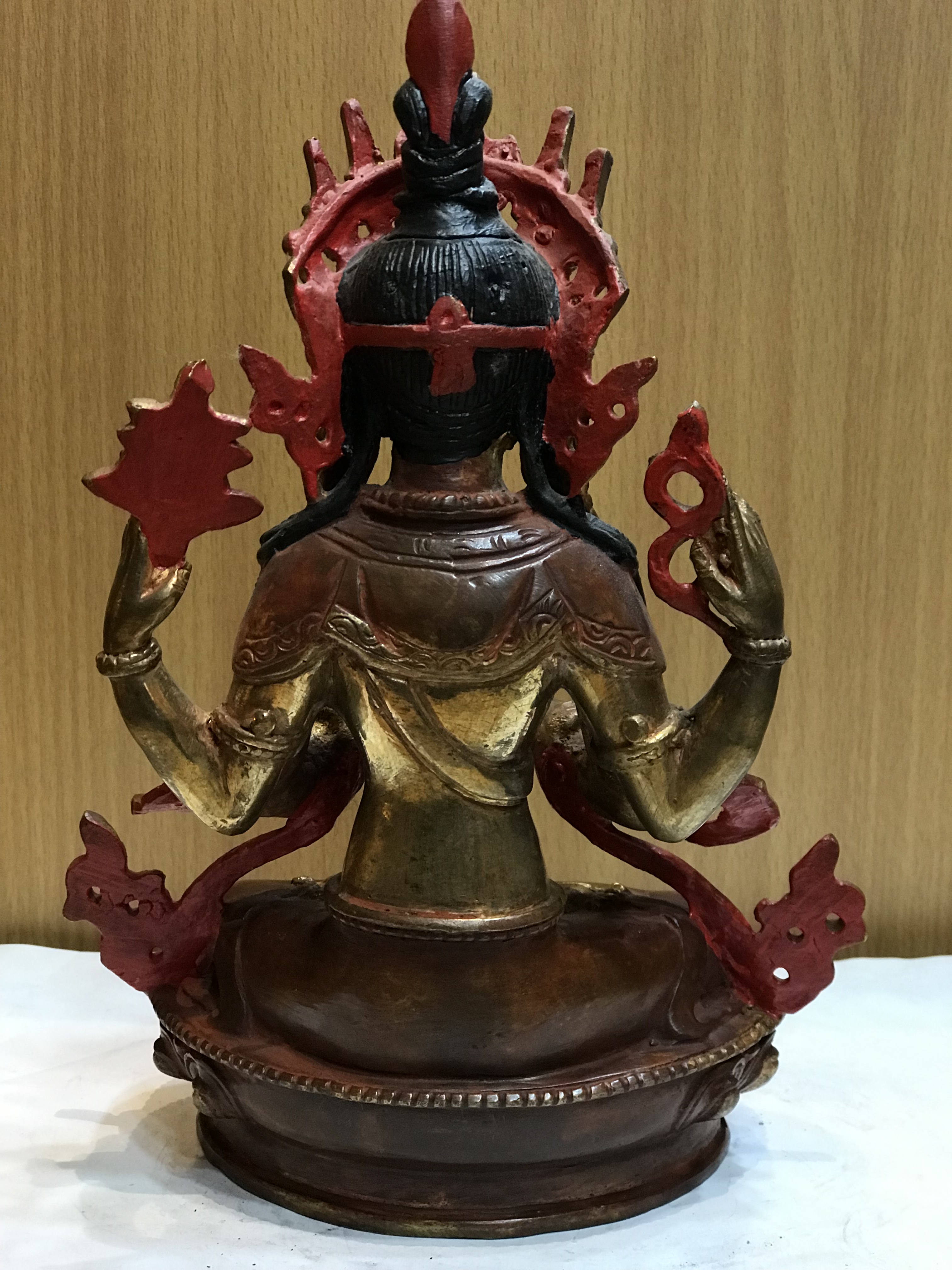 The Avalokiteshvara statues that our Nepali artisans make for the Tibetan monasteries commonly have four arms and single head. As an embodiment of the Bodhisattva of Compassion, Avalokiteshvara is able to hear and see the cries and suffering of all sentient life. Additionally, his four arms will greatly speed up progress and end the cycle of samsara for suffering beings.