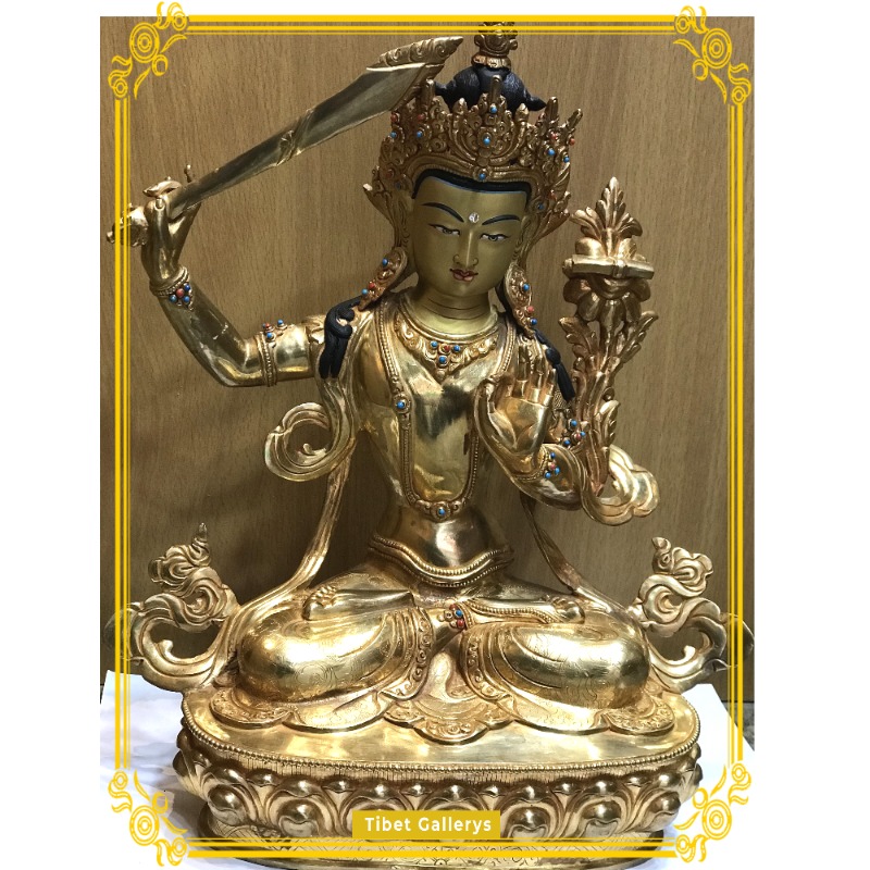 Gold Gilded 12″ Jampelyang Statue, Hand Carved, Fire Gilded 24K Gold