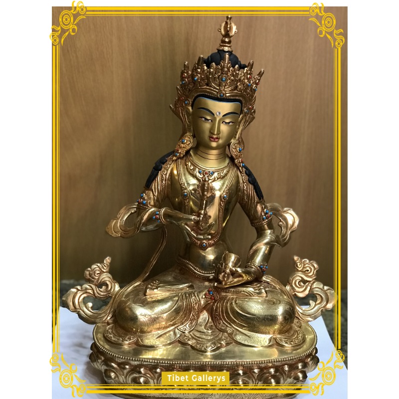 in his left hand and the vajra in his right hand. The ghanta bell is the