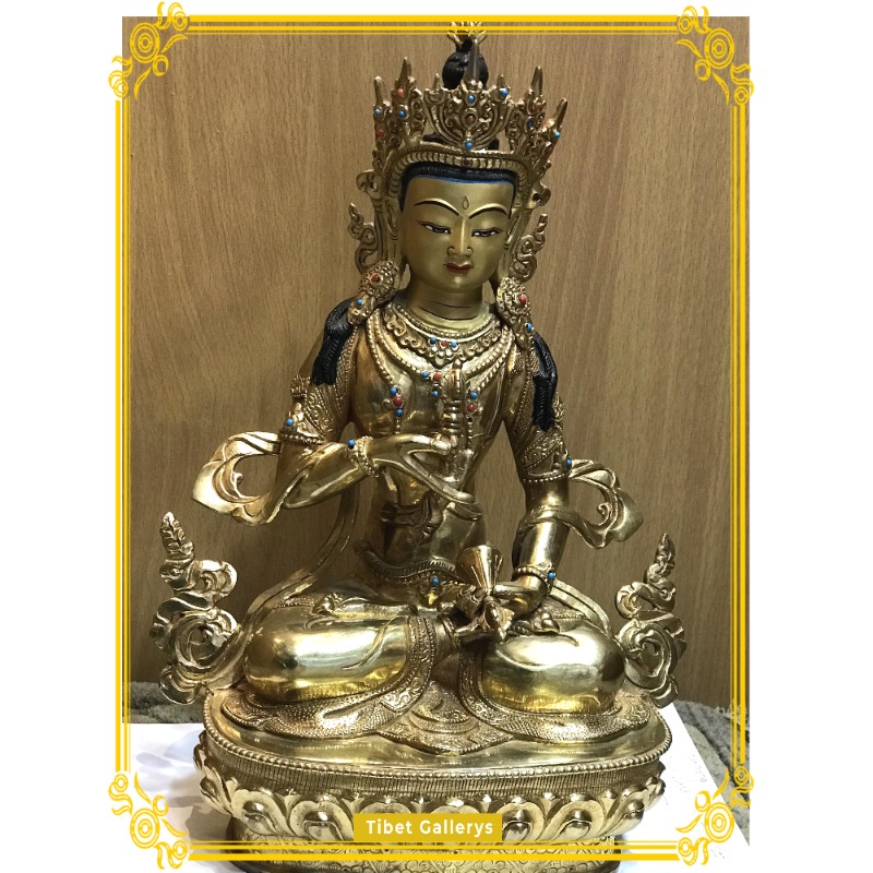 12 Inch Tibetan Dorje Sempa Statue, Fully Fire Gilded 24K Finish, Hand Carved Fine Details