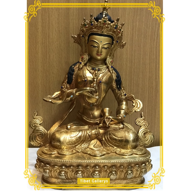 8 Inch Tibetan Dorje Sempa Statue, Fully Fire Gilded 24K Finish, Hand Carved Fine Details