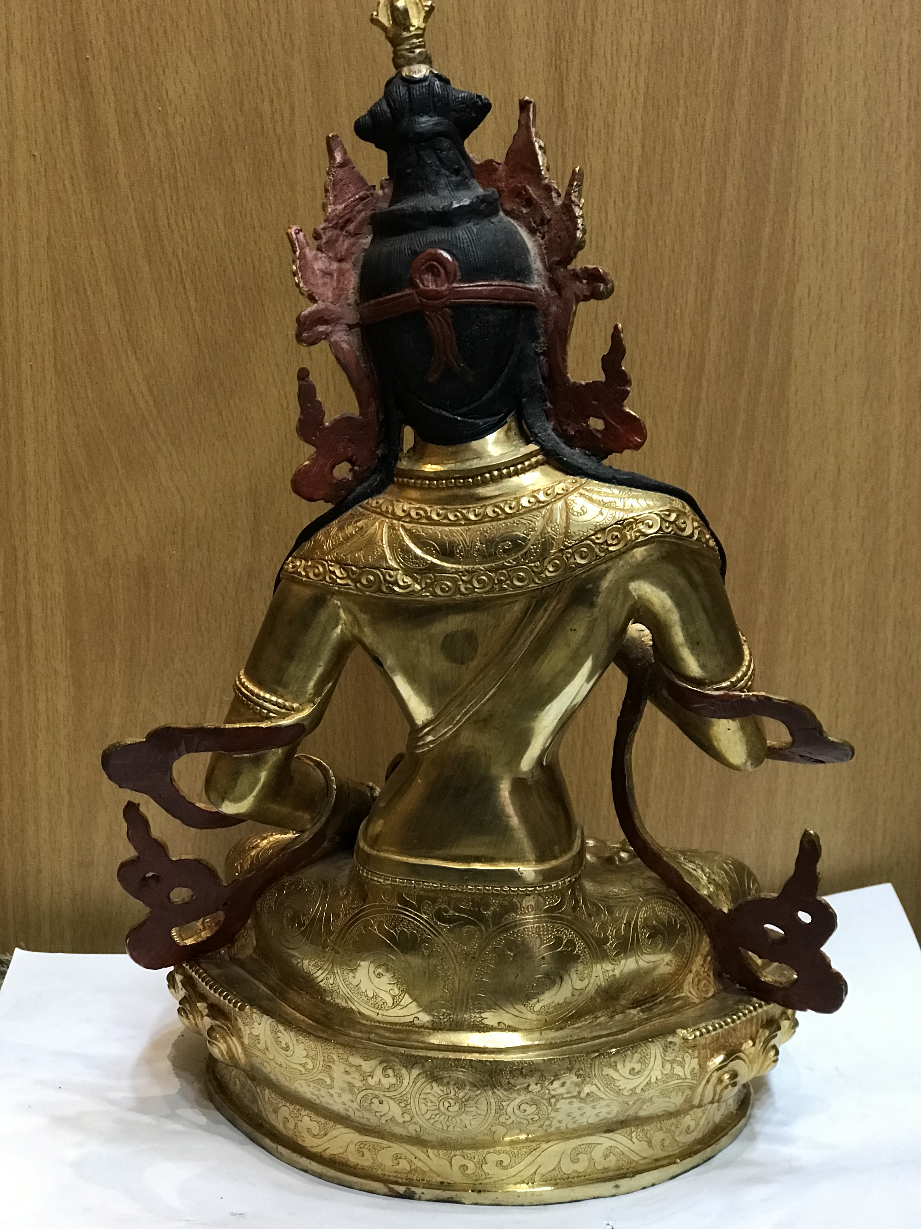 Tibetan Dorje Sempa statue is depicted wearing the crown and jewels of a