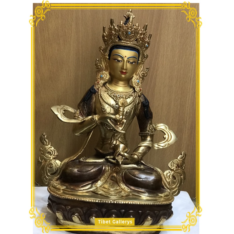 12 Inch Tibetan Dorje Sempa Statue, Partly Fire Gilded 24K Finish, Hand Carved Fine Details