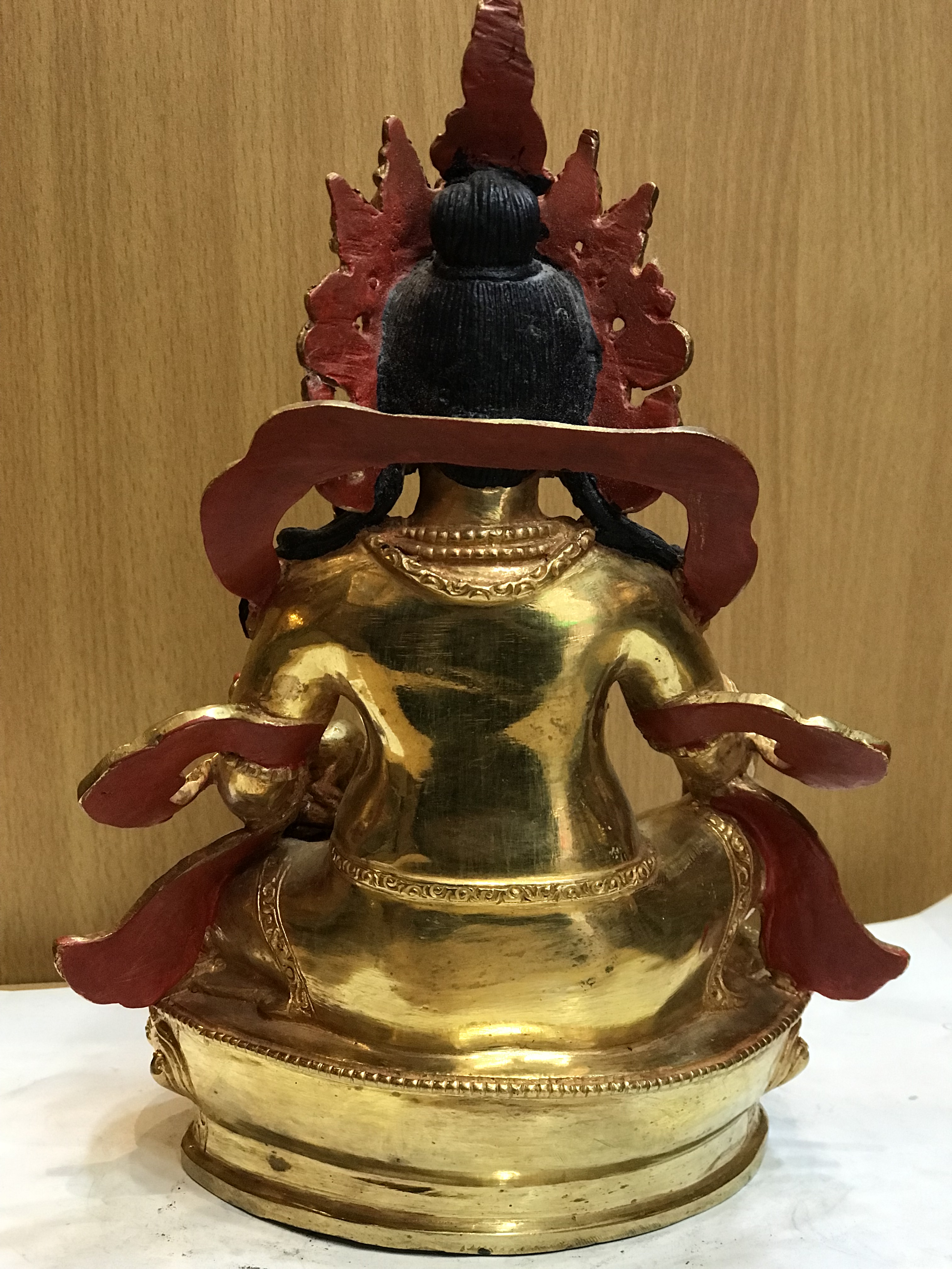 All of the zambhalas, including this Yellow zambhala sculpture are Dharmapala which are protectors of the Dharma. Additionally, Yellow zambhala was personally invited to become a Dharmapala by Gautama Buddha himself. This was in show of gratitude for protecting the Buddha as he gave a sermon.